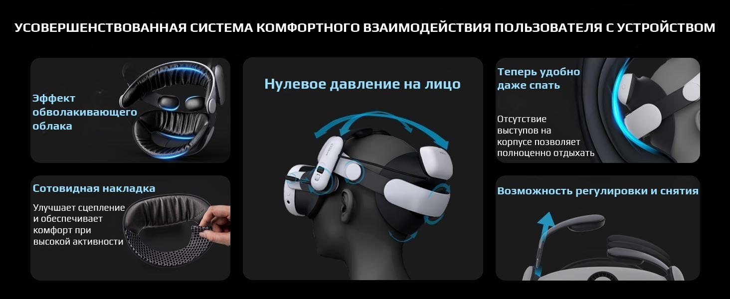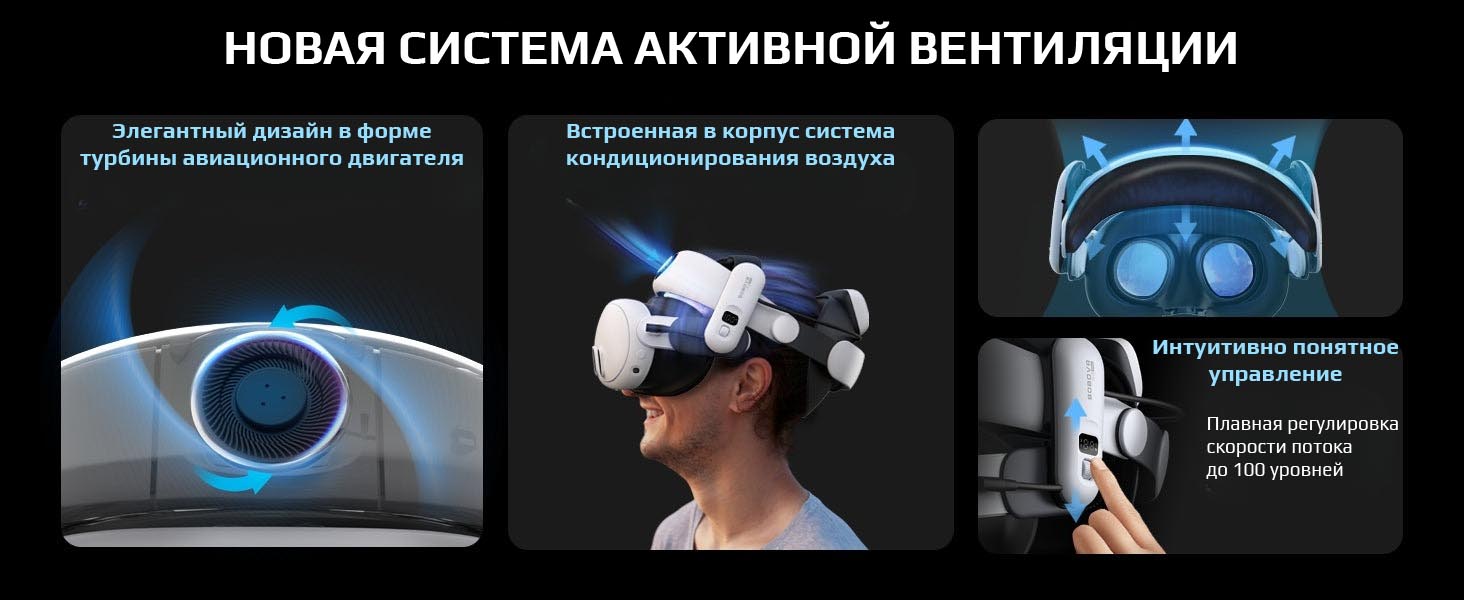 S3 Pro оснащено встроенной системой вентиляции головы, в которой используется бесшумная технология, позволяющая поддерживать комфортную температуру головы и лица даже при длительном ношении Quest 3. Система предусматривает 100-уровневую гибкую регулировку скорости потока ветра.