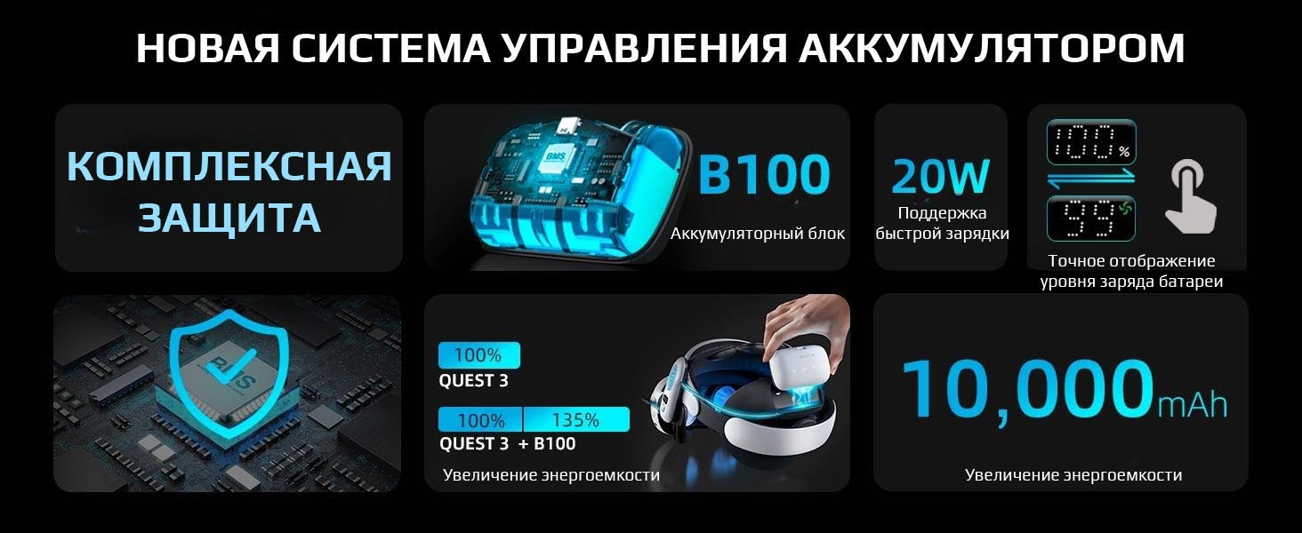 Инновационная конструкция BOBOVR с возможностью замены аккумулятора. Новая конструкция отличается тем, что разрядный модуль отделен от аккумуляторного блока, что уменьшает нагрев аккумулятора. Также улучшена производительность батареи на 6% по сравнению со старой моделью, добавлены звуковые напоминания о низком заряде батареи и точном уровне заряда.