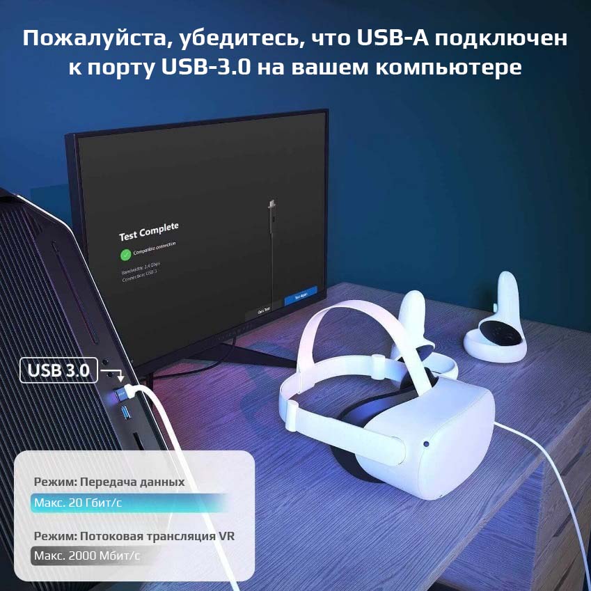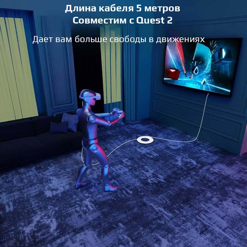 Погружайтесь в мир VR на ПК быстро и легко с помощью поддержки нескольких тысяч игр благодаря этому высококачественному соединительному кабелю.