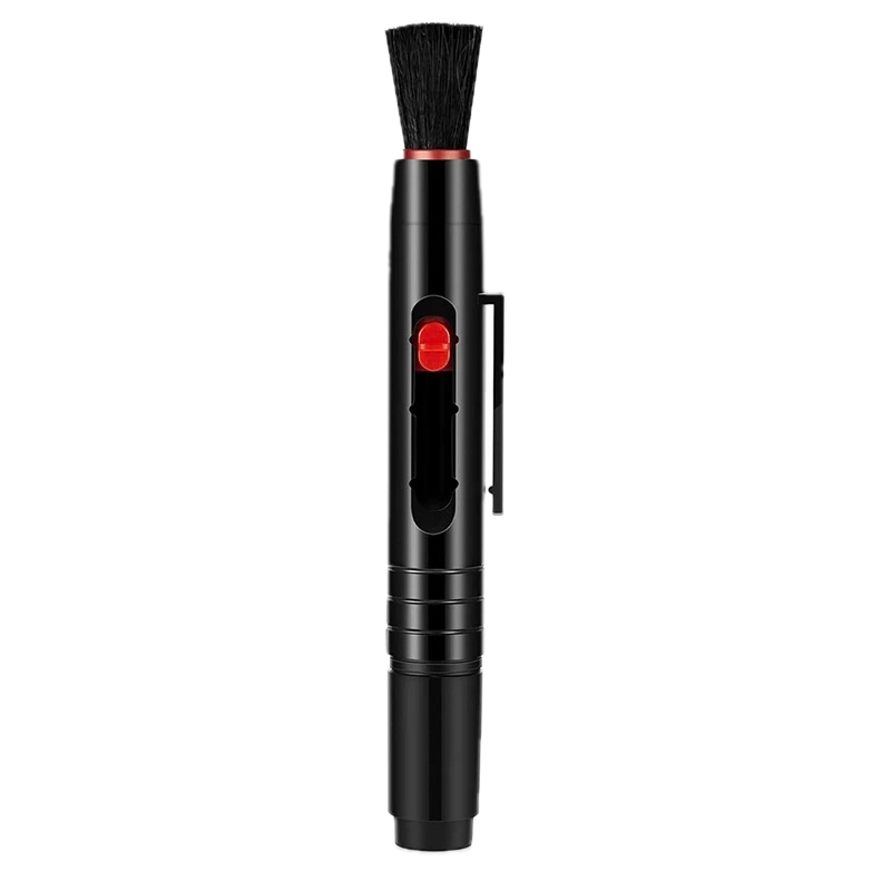 В процессе очистки вам сначала нужно использовать наконечник для обеспыливания и смахнуть оставшуюся пыль мягкой щеточкой. Затем вы можете использовать другую сторону устройства, чтобы стереть следы от пальцев и протереть линзу тканью.