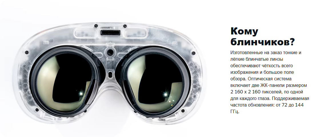 Особое внимание уделено качеству изображения: два OLED-дисплея с разрешением 2160×2160 на каждый глаз и частотой обновления 90 Гц создают глубокий и детализированный мир. Угол обзора в 110° и оптическая система с фиксированным фокусным расстоянием обеспечивают погружение без искажений. Для комфортного ношения шлем имеет сбалансированный вес (440 граммов основного модуля) и регулируемую оправу, которая легко адаптируется под любую форму головы.