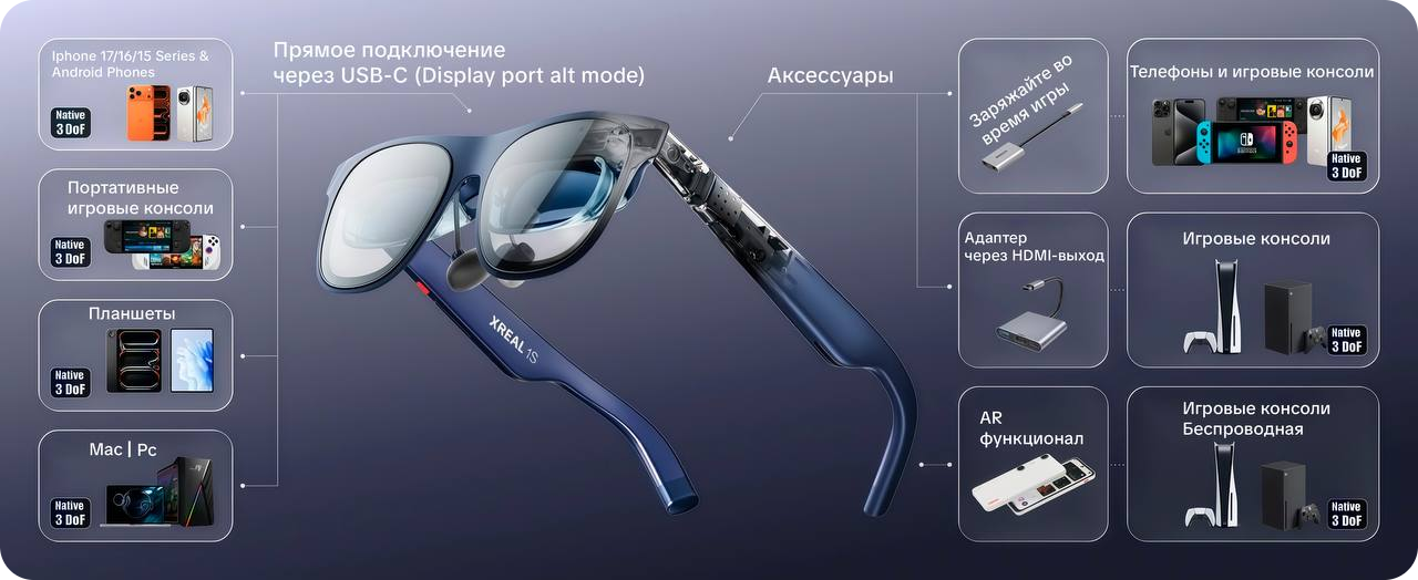 XREAL 1S — универсальный интерфейс между вами и любым устройством: