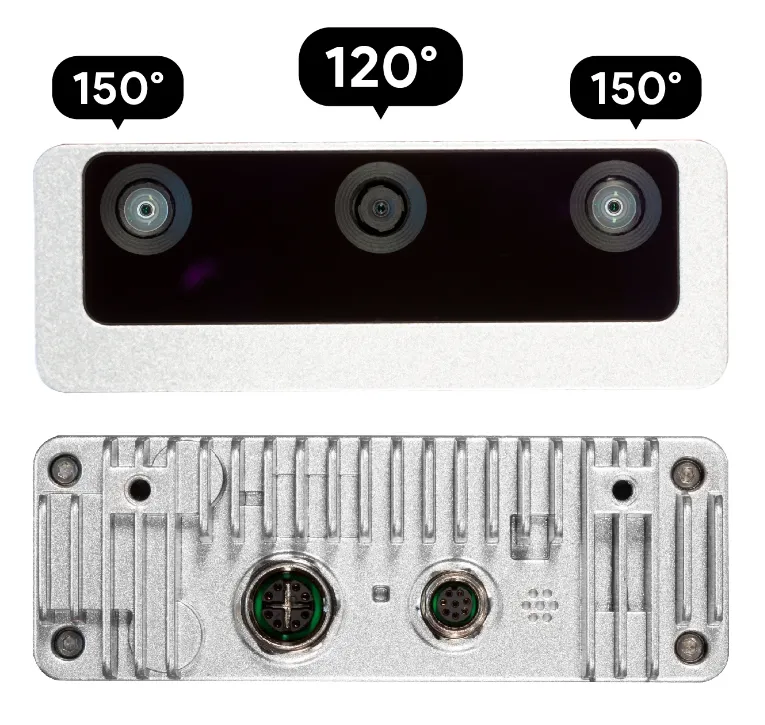 Камера оснащена сенсором OV9782 (PY058) с разрешением 1280×800 пикселей и 120 FPS, что обеспечивает плавное отображение даже в динамичных сценариях. Угол обзора 150° по горизонтали и 120° по вертикали позволяет захватывать больше информации в одном кадре, что особенно полезно для задач, связанных с локализацией объектов и 3D-картографией. Система поддерживает глобальный затвор, обеспечивающий четкое изображение движущихся объектов без искажений.