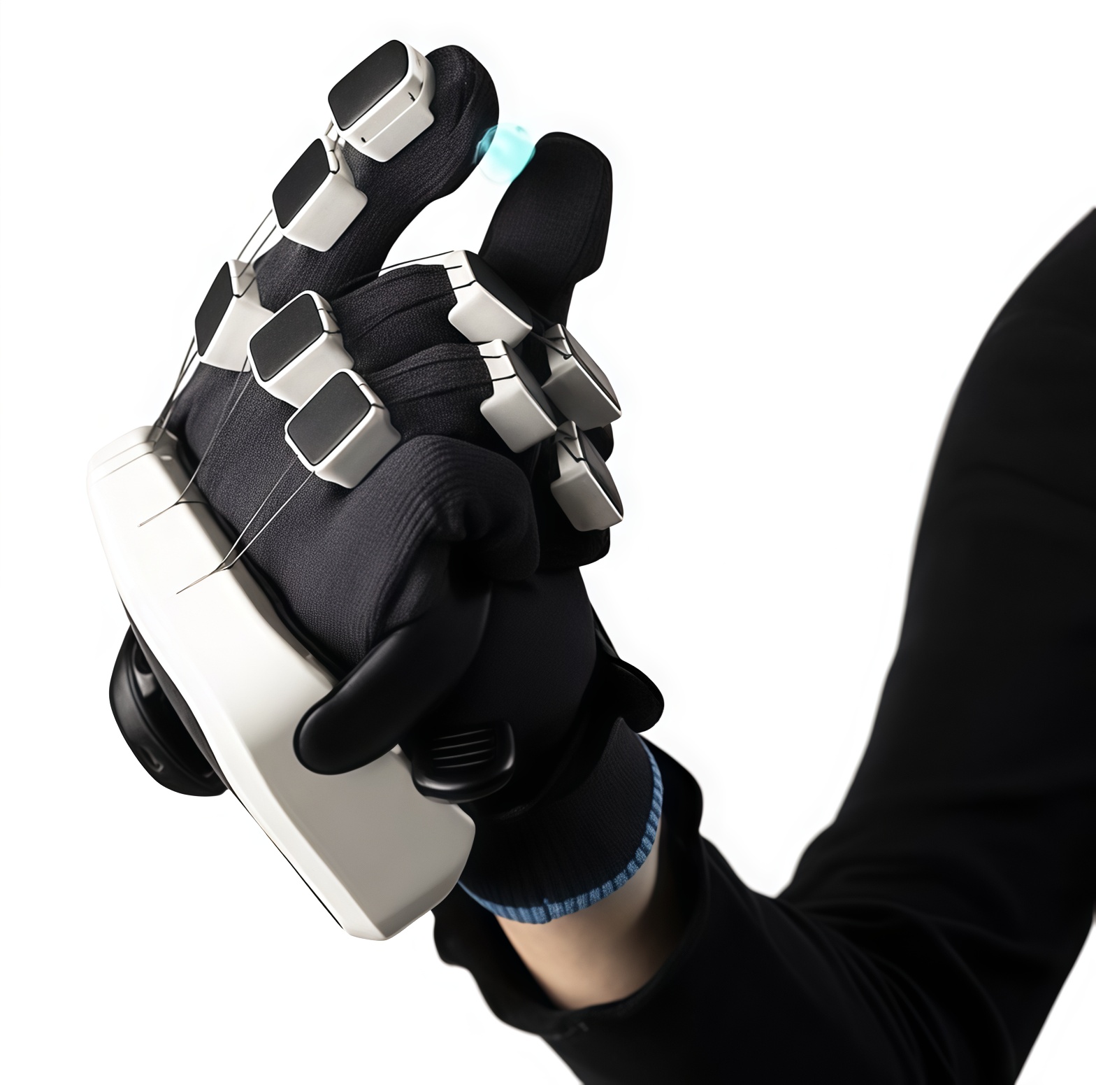 Ключевая инновация — активные ремни, которые динамически регулируют давление на ладонь, создавая иллюзию физического контакта. Например, вы почувствуете, как тяжелый инструмент давит на пальцы, или как хрупкий стеклянный объект сопротивляется вашему хвату. Система силовой обратной связи обеспечивает до 20 Н силы на каждый палец — это эквивалент веса 2 кг, что позволяет тренировать даже сложные сценарии, такие как ремонт двигателей или хирургические манипуляции.